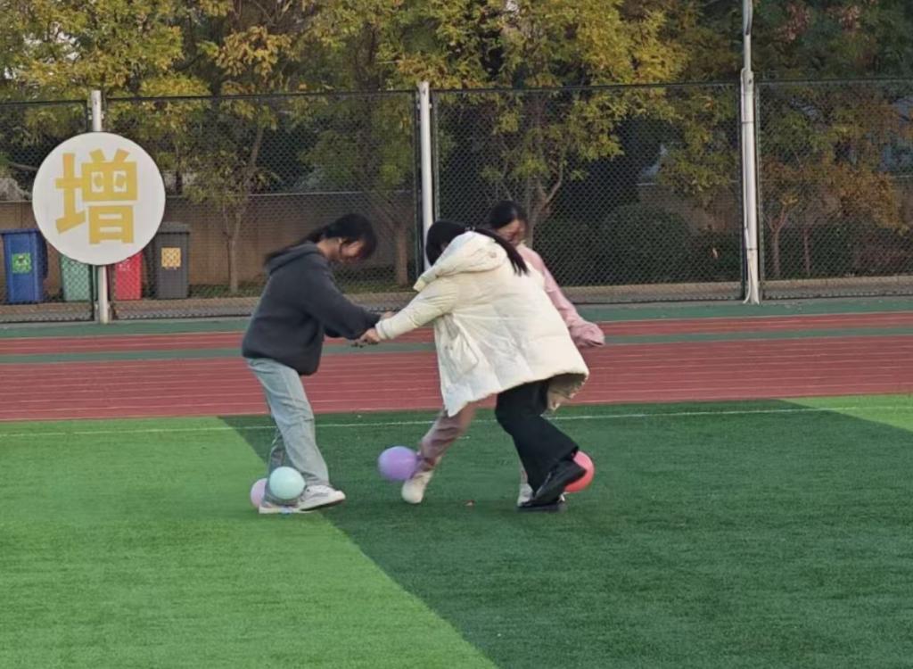 活动内容精彩纷呈,包括踩气球、击鼓传花等趣味游戏。在踩气球环节中,大家脚绑彩色气球,在欢声笑语中尽情释放着青春的活力。每一次气球的破裂,都伴随着同学们的尖叫与欢笑。随着鼓声的响起,击鼓传花游戏开始了,玩偶被同学们快速传递。每当鼓声停止时,拿到玩偶的同学就要接受真心话大冒险的挑战。有的同学勇敢分享了自己的成长故事,有的同学则选择了刺激的大冒险任务,现场气氛热烈。