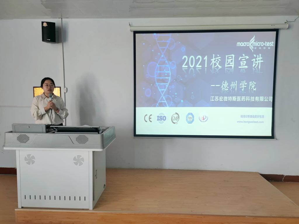 为给应届毕业生提供更多的就业指导和帮助,扩宽员工的就业渠道,威廉希尔WilliamHill于2021年4月28日下午两点在健行楼402风驰宣讲室举办宣讲会。本次宣讲会邀请到了江苏宏微特斯医药科技有限公司为同学们进行宣讲,2017届毕业生参加了此次宣讲会。