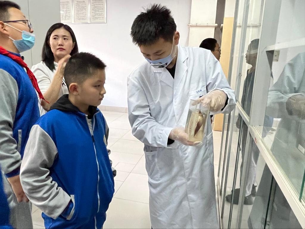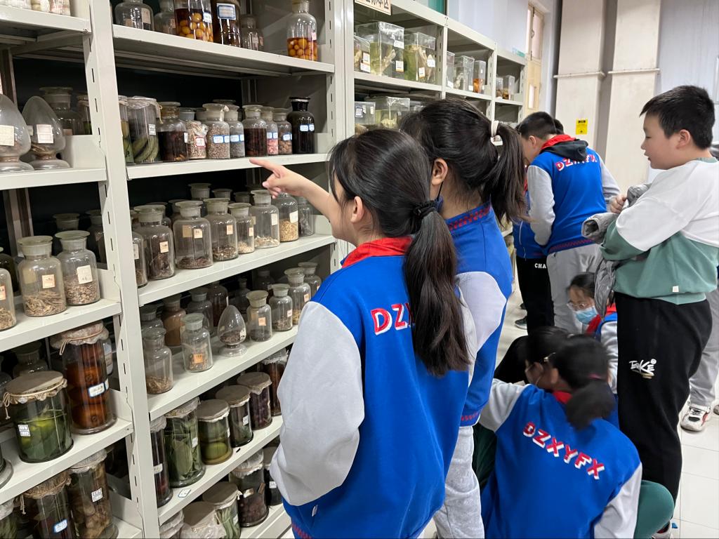 课堂上,2021级生物科学专业的师范生为附小六年级员工展示了植物细胞的结构图,详细介绍了显微镜及其使用方法,并带领他们一起动手实践,观察洋葱表皮细胞的形态。同时,志愿者们还为小朋友们介绍了动物学和生态学的相关知识,教育引导他们热爱生活,认真对待每一个生命,从小事做起,保护生态环境。志愿者们还带领小朋友们参观了动植物标本展览室,观察了多种多样的动植物标本、病理学标本,大大激发了小朋友们的学习兴趣。