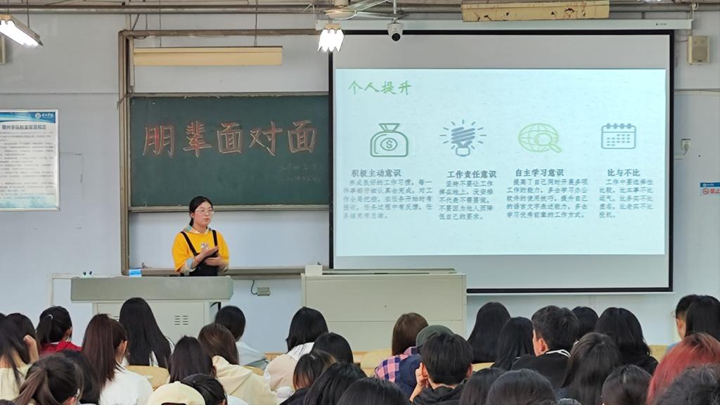 活动中,两位同学从自身出发,围绕思想建设、日常学习、工作素养、责任担当、自我提升等方面进行了经验分享,并着重讲解了员工干部的角色定位、工作流程、工作方法及工作技巧,积极引导员工干部勇于创新、敢于担当、无私奉献,学习他人长处,掌握高效学习、工作方法。在交流互动环节中,两位学姐详细回答了与会同学们提出的问题,于对话中共求答案,在问答中共谋发展。