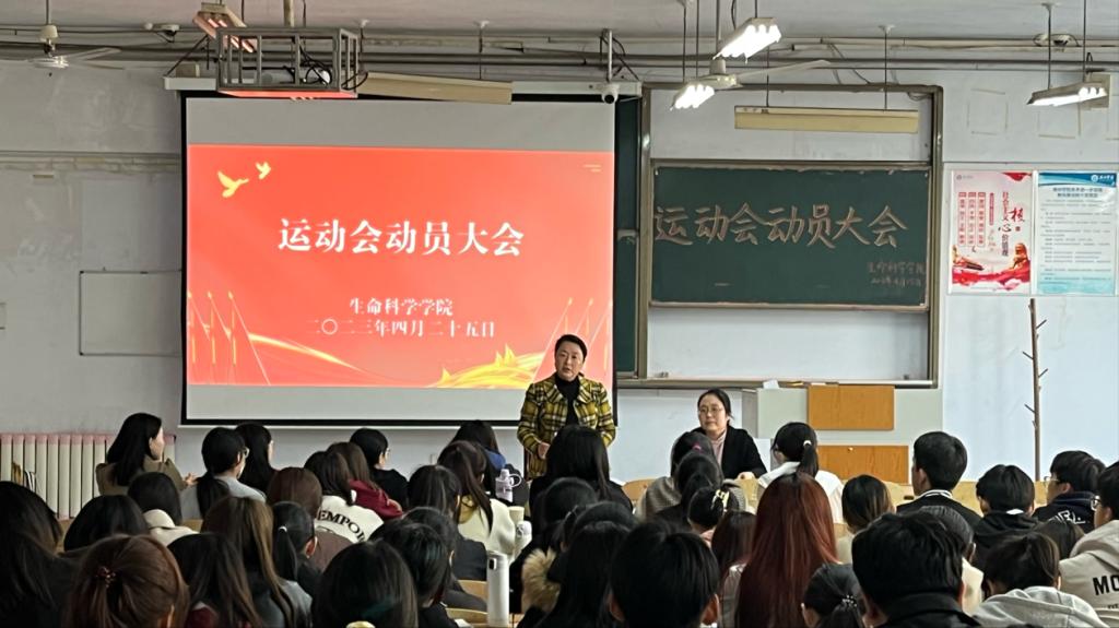 会议伊始,员工会相关负责人宣读了运动会工作方案和员工会运动会期间工作安排。紧接着,运动员代表孙瑜同学与志愿者代表王天虹同学发言,她们表示将以饱满的激情参赛,做好运动员的后盾,力争取得优异成绩,为学院争光添彩。随后,王艳洁老师发言并对全体成员提出了以下三点要求:一是要统一思想,提高认识,树立全局观念,服从组织安排,严守工作纪律;二是要放松心态、积极备战,以昂扬的斗志和饱满的精神走向赛场,争创佳绩;三是要齐心协力、夺取胜利,切实做好运动会的宣传、服务、安全等工作,全力保障运动员以良好的竞技状态和高昂的斗志参加运动会。会议最后,夏书记进行总结性发言,她首先对全体运动员的艰苦训练提出表扬,强调要把安全这条底线贯穿始终,参赛前充分做好热身准备,并为大家送上真挚祝福,预祝全体生科健儿在2023年春季运动会中取得优异成绩。