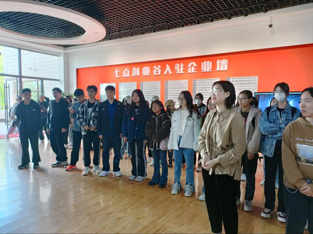 同学们依次参观了七点创业谷的创业书吧、创业苗圃区、创业服务信息港、创业辅导中心、开放式创业区、路演厅、科研成果转化区,认真听取了创业基地建设运营情况、入驻企业发展历程、发展现状和发展前景,详细了解了企业产品市场及招聘需求等。与此同时,同学们与相关负责人深入讨论交流,更加充分的了解到入驻项目开展情况,参观结束后,同学们就创新创业、项目入驻流程等问题积极进行讨论。