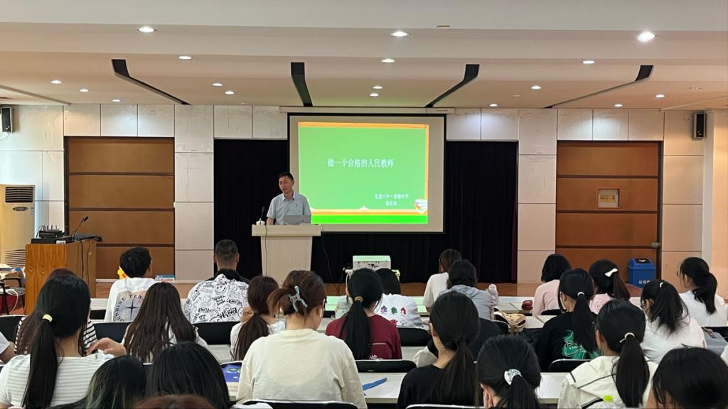 讲座伊始,徐董事长引用古今中外教育家的名言警句,详细解读了“立德树人”的内涵,深刻阐释了“德”字对师范生就业的重要意义。随后,徐董事长从教师应具备的职业素养和专业素养两个方面出发,围绕教师的角色定位、教师职业行为的基本规范及应遵守的法律法规向同学们分享了如何从员工成长为一名合格的人民教师,同时,徐董事长强调同学们要夯实基础,站稳讲台,将备课、课堂设计和组织实施教学等认真落到实处,真正成为有理想信念、有道德情操、有扎实学识、有仁爱之心的“四有”好老师。