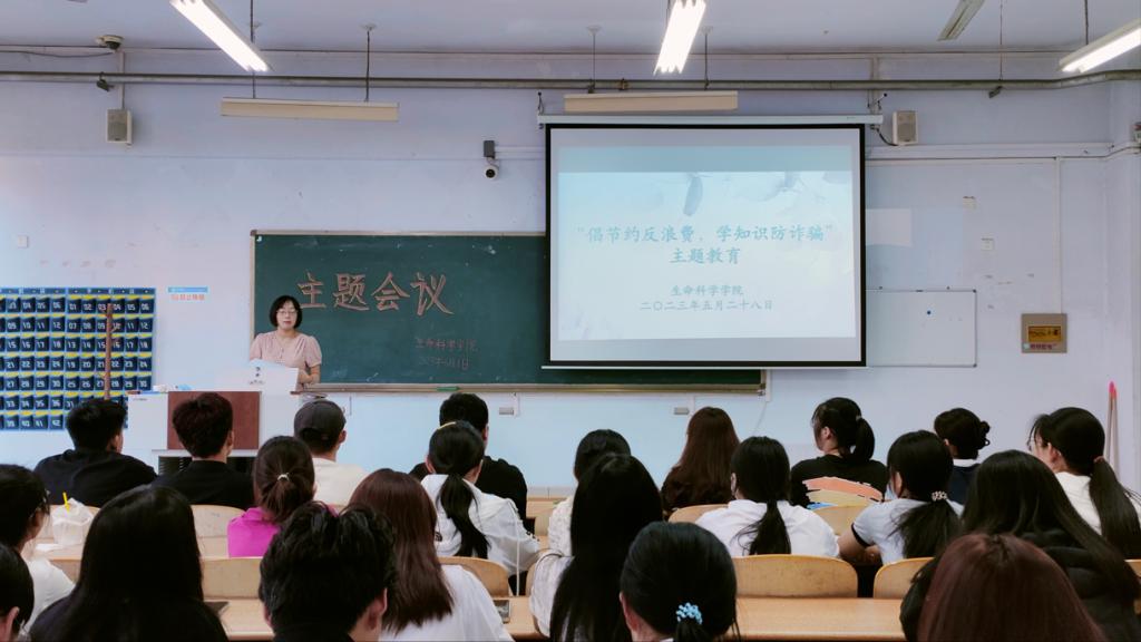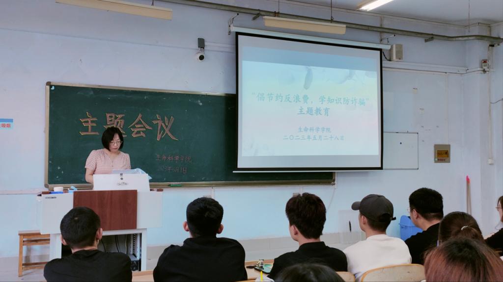 班会上,郑金召老师以校园诈骗的情况、现状、高发案件类型为切入点,对冒充司法机关工作人员、熟人、虚假中奖信息、网络购物、不安全链接等常见电信诈骗犯罪手段进行详细讲解,并对防诈骗方法及被骗后的处理方案进行讲述,提醒同学们谨防电信诈骗,保护好自己的人身和财产安全。随后,郑老师通过列举发生在同学们身边的种种浪费现象,向大家说明了勤俭节约和保护环境的必要性,教育和引导员工树立“三节”意识和“无废”意识,推动节约理念和“无废理念”入脑入心。