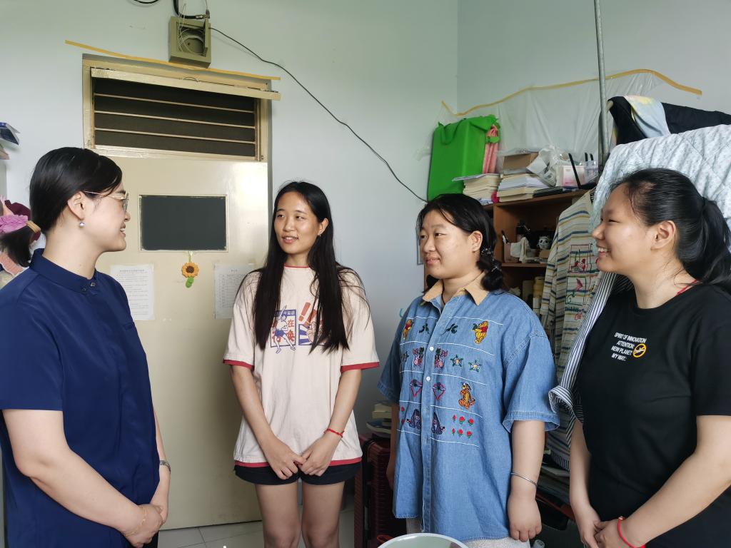 在寝室走访期间,辅导员孙珍辉老师亲切询问了同学们最近的生活、就业安排情况,了解同学们离校行程安排、手续办理等问题,耐心解答了同学们的疑惑,并提醒大家在离校前将宿舍整理干净,检查好水电安全,在离校途中注意人身财产安全,确保安全愉悦的离校,同时对毕业生表达了衷心的祝愿,期望大家在未来的工作、生活中牢记母校和师长的嘱托,传承和发扬“崇德启智,励志博学”的校训精神,以实际行动为母校添光增彩。