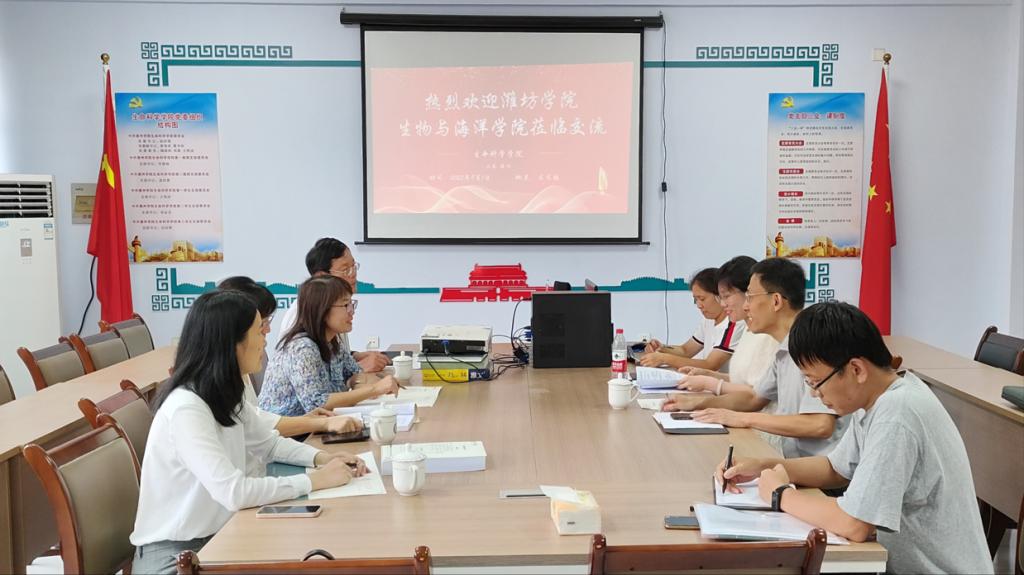 9月1日,潍坊学院生物与海洋学院副经理许瑞瑞、专业负责人王汉海、教研室副主任万永霞、博士徐从梅一行来公司交流师范类专业认证工作经验,公司副经理宋建,经理助理孙颖慧,系主任张培亮参会,会议由副经理宋建主持。