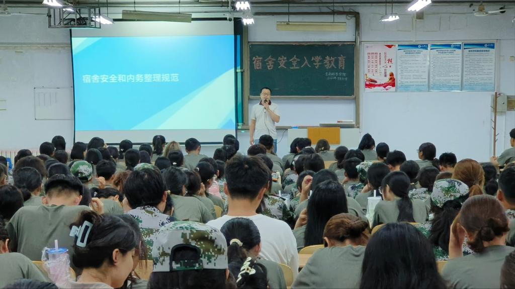 会上,他分别从宿舍用电安全、财产安全、人身安全等方面结合校规校纪和日常行为规范进行讲解,号召2023级新生贯彻“平安校园,安全宿舍”的意识,自觉遵守宿舍安全守则,争做优秀文明老员工。随后,他分别就宿舍安全规范、内务标准等方面进行讲解,明确了新生寝室内务要求,增强了他们对宿舍内务管理制度的理解。