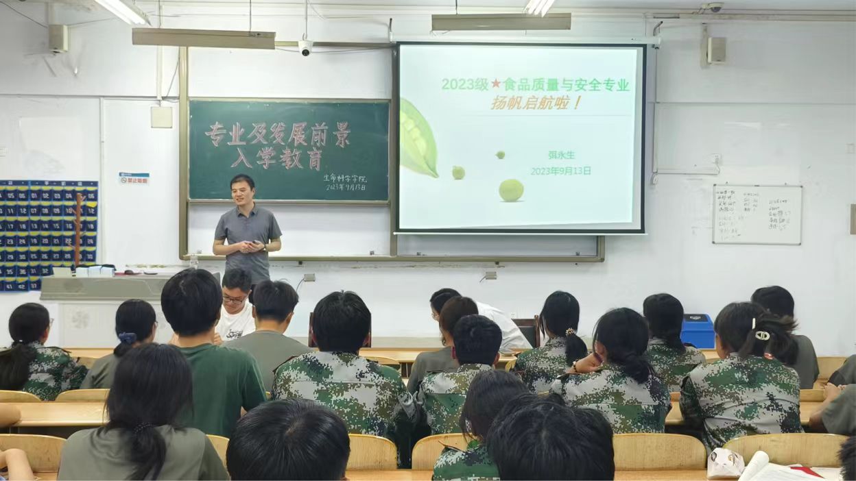 9月13日晚,公司食品质量与安全专业系主任弭永生于求实楼0115教室,为2023级新生开展入学教育。