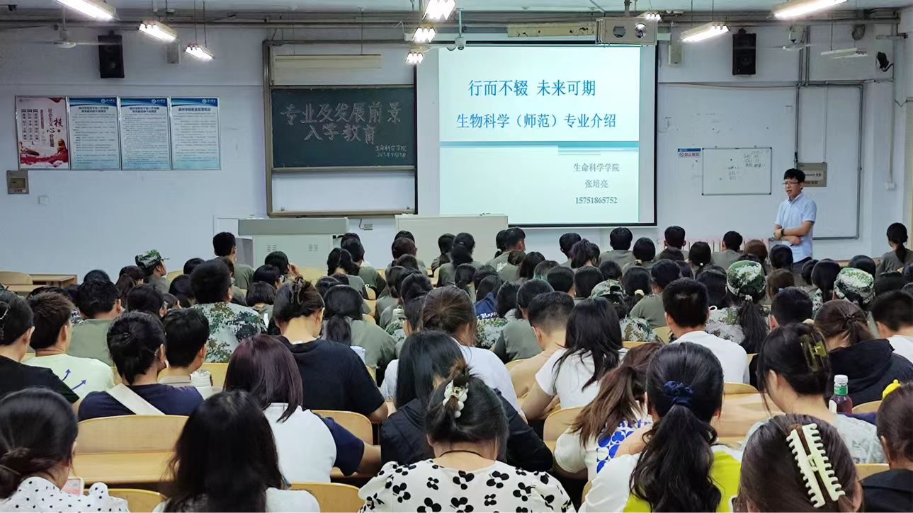 9月13日晚,公司生物科学专业系主任张培亮老师于求实楼0112教室,为2023级新生开展入学教育。