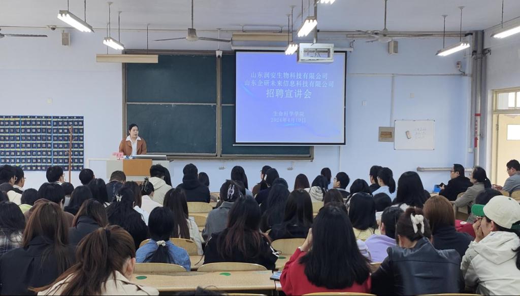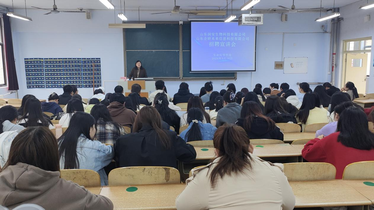4月10日,为促进毕业生高质量就业,更好地加强与员工企业合作,威廉希尔WilliamHill于求实楼0118教室举行山东润安生物科技有限公司与山东企研未来信息科技有限公司专场招聘宣讲会,2024届毕业班师生参加。