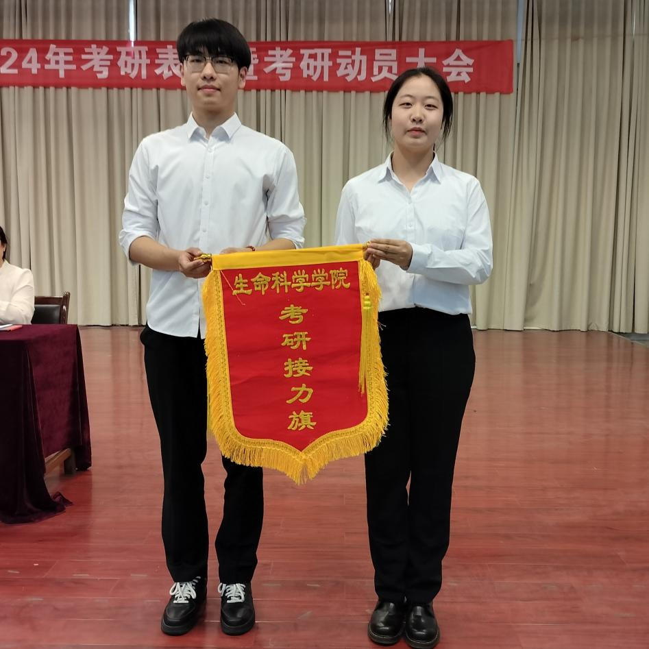 伴着庄严的国歌,大会拉开序幕。副院长魏振林宣读2024届考研员工录取名单。紧接着,在热烈的掌声中,与会领导、老师为受表彰的考研员工代表颁发奖品。随后,2024届优秀考研员工代表邹宇涵分享考研经验和心得,并将“考研接力旗”传递给下一届考研员工代表吴欣倢,她接过旗帜后,表达了对考研的坚定决心和必胜信念。