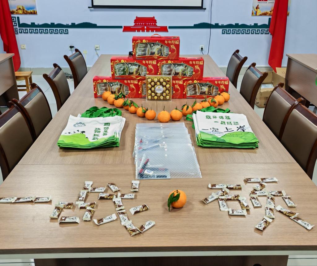 公司精心准备的关怀礼包满载心意,其中有印着院徽、院训与‘一定上岸’祝愿的特制帆布包,传递着殷切期许,还有象征一战‘橙’硕的橙子、寓意‘巧克’难关的巧克力以及金榜题名文具套装,尽显学院对考研学子的关怀与期待。